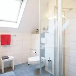 Von der Villa in Hasselfelde aus hat man einen Ausblick auf den Garten. Die Badezimmer in der Unterkunft sind mit einer Dusche ausgestattet.